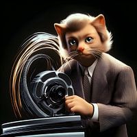 We presenteren een fascinerend digitaal kunstwerk van een elegante kat in een strak pak met stropdas, die zich wijdt aan de complexe taak van het werken aan een elektromotor. Dit intrigerende tafereel tegen een strakke zwarte achtergrond wordt omringd door een oogverblindend schouwspel van wervelende elektrische vonken en combineert…