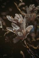 Voor dag en dauw, magnolia, de lente bloemen, de lente, tuinen, struiken, bloeiende struik, roze, sepia