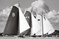 IFKS Skûtsjes zeilen in een voordewinds rak op het Slotermeer bij Sloten in Friesland tijdens een zeilwedstrijd om het IFKS Kampioenschap Skûtsjesilen