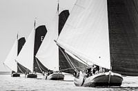 SKS Skûtsjesilen op het IJsselmeer in de baai van Lemmer, Friesland. Skûtsjes in het voordewindse rak.