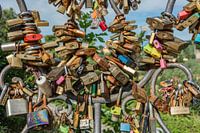 Voor eeuwig verbonden. Hangsloten in de rozentuin aan de oever van de rivier de Arno in Florence. Net als op andere plaatsen in de wereld worden op deze plek hangsloten opgehangen als symbool van verbondenheid met een geliefde.