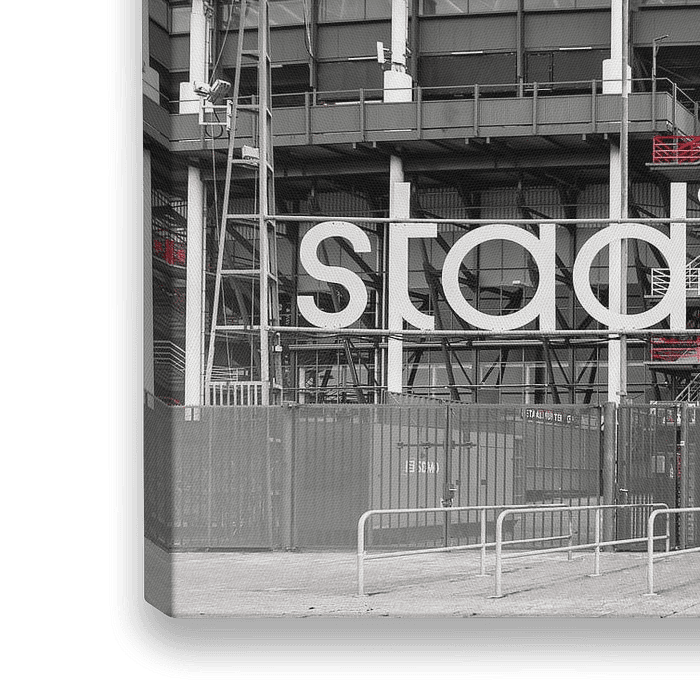 Vooraanzicht Feijenoord Stadion De Kuip met zwart en rode kleuren