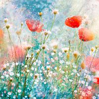 Voorjaar! Klaprozen en gipskruid in frissen lente kleuren. van Studio Pieternel