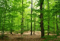 Een prachtig beukenbos met nieuw bladerdak in de lente. Door de lichtval zijn de verschillende tinten groen duidelijk zichtbaar. foto gemaakt in Emmen.