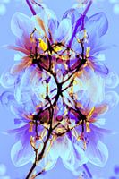 Digitaal kunstwerk met prachtige magnoliabloesems in delicate paarse tinten. Dit florale beeldmotief is gemaakt met behulp van digitale beeldbewerking met behulp van zelf gefotografeerde florale beeldelementen van de bloesems van de magnoliaboom.