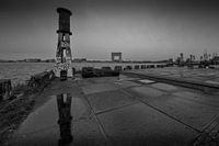 Dit werk is onderdeel van een serie van zwart-wit werken die gemaakt zijn op het voormalig NDSM terrein in Amsterdam. Van de voormalige scheepswerf zijn nog steeds overblijfselen te vinden, zoals de enorme hijskraam die nu als hotel dienst doet. Over het water heen zijn markante gebouwen te zien, o.a. Poortwachter.
