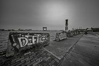 Dit werk is onderdeel van een serie van zwart-wit werken die gemaakt zijn op het voormalig NDSM terrein in Amsterdam. Van de voormalige scheepswerf zijn nog steeds overblijfselen te vinden, zoals de enorme hijskraam die nu als hotel dienst doet. Over het water heen zijn markante gebouwen te zien, o.a. Poortwachter.