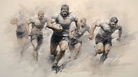 Deze compositie vangt de rauwe energie en kracht van het rugby op een indrukwekkende manier, waardoor de kijker wordt meegesleept in de opwinding van de wedstrijd.