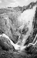 Vøringsfossen, panorama waterval, Noorwegen in zwart wit.