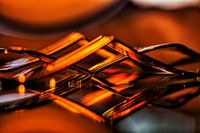 Macro opnamen van bestek op een spiegel met gekleurde LED verlichting