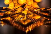 Macro opnamen van bestek op een spiegel met gekleurde LED verlichting