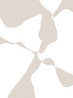 Minimalistisch abstract van organische vormen van zwevende, openende en sluitende ruimtes in neutraal bruin op wit.