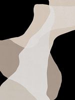 Minimalistisch abstract van organische, zwevende vormen van openende en sluitende ruimtes in neutraal bruin en zwart.