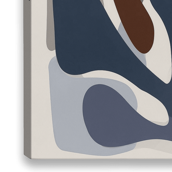 Een abstracte compositie met eenvoudige, vloeiende vormen in zachte bruin- en blauwtinten, geïnspireerd op het van Matisse.
