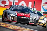 Team Audi Belgium Audi R8 GT3 versus team Marc VDS BMW Z4 GT3 in Les Combes tijdens de 24 uren van Spa 2015. Blancpain Endurances Series, Circuit van Spa-Francorchamps, België.