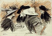 Vos Chapeux: Ladies at the Ritz, New York. Paul Cesar Helleu (1859-1927). Black and red chalk. Executed in 1913. 21.6 x 31.1cm. Photo © Christie's Images / Bridgeman Images