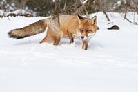 Koop de foto Vos in de sneeuw van Menno Schaefer op canvas, aluminium dibond, (ingelijste) fotoprint, behang en ArtFrame, op maat geprint in Fine-Art kwaliteit.