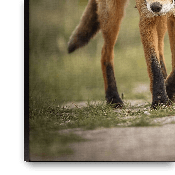 Koop de foto Vos op de weg! van Tom Zwerver als print op canvas, aluminium dibond, (ingelijste) fotoprint, behang en ArtFrame. Voor jou op maat geprint in Fine-Art kwaliteit.