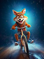 Vos op een fiets van PixelPrestige