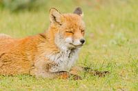 Een vos rust uit in de zon, in de duinen bij Amsterdam en Zandvoort.