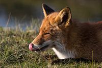 Likkebarende vos die zojuist water had gedronken