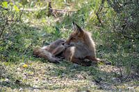 In de Amsterdamse Waterleiding duinen heb je een goede kans de vos tegen te komen. Hier ligt ie lekker tussen de struiken.