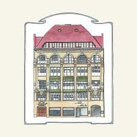 Koop de illustratie Vox Huis in 1920 Berlijn van Sandra Brill op canvas, aluminium dibond, (ingelijste) fotoprint, behang en ArtFrame, op maat geprint in Fine-Art kwaliteit.