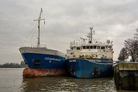 Vrachtschepen afgemeerd aan de Parkkade Rotterdam.