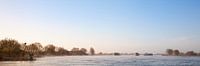 3 Vrachtschepen passeren elkaar op de IJssel bij Wilsum. Gemaakt in het vroege morgenlicht, terwijl de zon nog maar amper boven de horizon is gekomen.