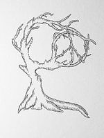 Oude boom met takken als vredessymbool, fineliner illustratie op papier