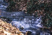 Ijs in een beekje in de Ardennen, Natuur in Belgie bij een reis door Europa. Koude dagen, fijne wandelingen.