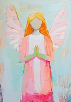 Details: engel schilderij, pastel schilderij, moderne kunst, figuur schilderij, gebed, vleugels, religieus schilderij, Kerst schilderij, spiritueel schilderij