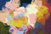 Pastel dromen. Kleurrijk abstract schilderij in roze, groen, geel, paars.Dina Dankers Japanse kunst ukiyo-e. Japanse vrouw door Katsushika Hokusai in aardetintenDina Dankers