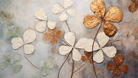 Dit schilderij uit de collectie 'Florale Harmonie' vangt de essentie van bloeiend geluk. De delicate bloemblaadjes verstrengelen zich in perfecte harmonie, waardoor een visuele symfonie ontstaat die de schoonheid en rust viert die te vinden zijn in het hart van een bloeiende bloem.
