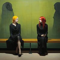 Wat het meest opvalt, is de emotionele diepgang in dit werk. De blikken van de vriendinnen zijn doordrenkt van betekenis, en het lijkt alsof ze een eeuwigdurend gesprek voeren dat zich buiten de grenzen van het papier uitstrekt. Deze kunstwerken zijn als een venster naar het hart van vriendschap, waar liefde en begrip elkaar ontmoeten in een visueel feest.