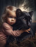 Liefde voor dieren, tussen een klein blond meisje met blauwe ogen en een zwarte panter, respect voor al wat leeft en vriendschap voor het leven. Wederzijds vertrouwen is de basis. Het beeld is met behulp van ai gegenereerd.