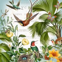 Kolibries zijn fascinerende vliegkunstenaars die zoemend in de lucht kunnen "staan", met 40 tot 50 vleugelslagen per seconde. Ze kunnen zelfs zijwaarts en achterwaarts vliegen. Dit onderscheidt hen van alle andere vogels in de wereld. Deze afbeelding is gemaakt van bijgesneden historische illustraties en bewerkt met Photoshop.