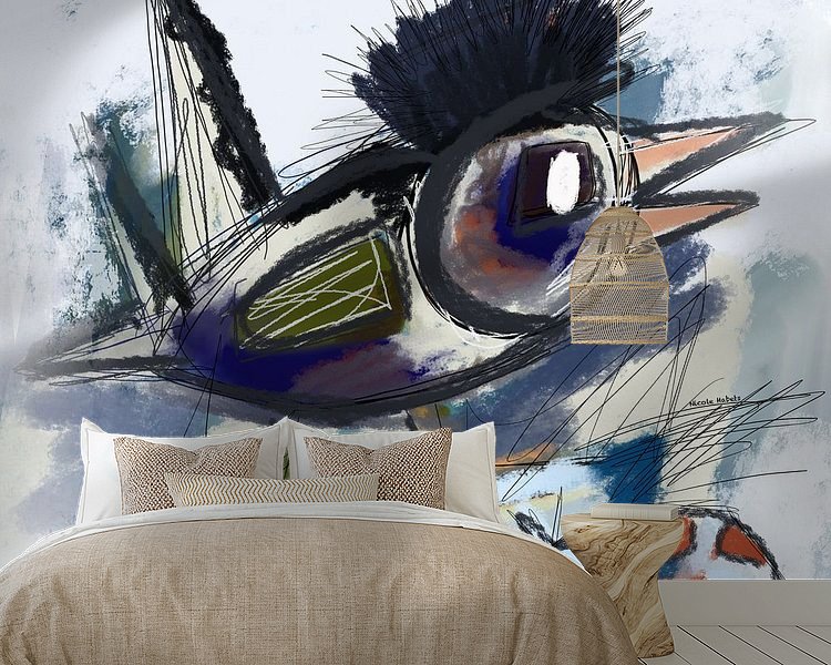 Cobra stijl schilderij van een vogel en lieveheersbeestje.