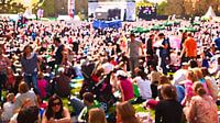 Bevrijdingsdag 2013 in Utrecht. Park Transwijk was zonovergoten en afgeladen vol. Je kon over de hoofden lopen. Optredens van Henk Westbroek en het verschijnen van Mark Rutte trokken ook massa's mensen.
