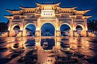 Liberty Arch plein in Taipei op een regenachtige nacht.