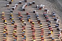 Strandstoelenscène in de vroege ochtend op het strand van Travemünde