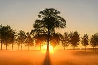 Vroege zonsopgang tijdens een mooie lentedag over de Zwartendijk, de oude Zuiderzeedijk in de IJsseldelta bij Kampen in Overijssel Nederland.
