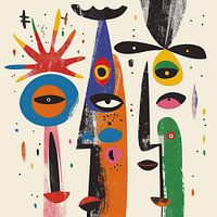 Vrolijk 1332 - Picasso inspired abstract schilderij in moderne stijl. Geinspireerd door Picasso.