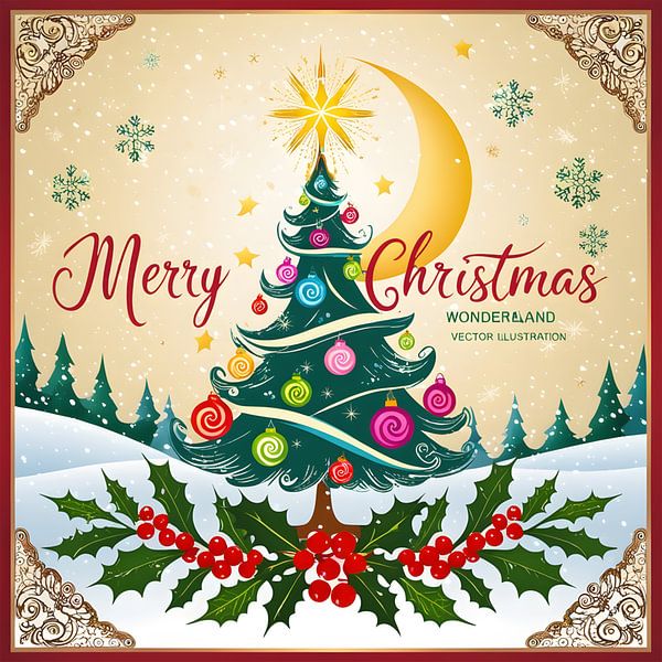 Koop de illustratie Vrolijk Kerstfeest van saken als print op canvas, aluminium dibond, (ingelijste) fotoprint, behang en ArtFrame. Voor jou op maat geprint in Fine-Art kwaliteit.