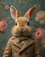 Vrolijk Pasen! Een goed geklede Paashaas op z'n "paasbest". Kies zelf het formaat en materiaal bij dit werk en maak er een bijzondere blikvanger van voor jouw interieur!