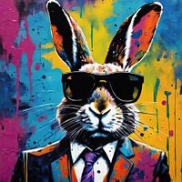 Vrolijk Schilderij Bunny 02.37 - een Pop Art Schilderij als echte Blikvanger... Uit onze collectie 'Sharply Dressed Animals'. Dit schilderij krijgt gegarandeerd aandacht...