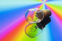 Een lampje op een rainbow gekleurde achtergrond.