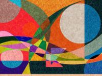 Een digitaal opgebouwd abstract met vrolijke kleuren. Constrasterende kleuren heb ik naast elkaar geplaatst zodat de kleuren goed opvallen. Ik heb cirkels gebruikt , rechte en vloeiende lijnen. De kleurvlakken zijn niet egaal maar hebben een soort textuur.