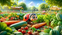 Vrolijk lieveheersbeestje verkent de kleurrijke moestuin van artefacti