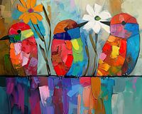 Twee Vogels Kunst | SchilderijAbstract Schilderij Vogels: KolibriesAbstract Schilderij